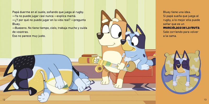 Las aventuras de BLUEY, la serie de animación más vista del mundo en Disney+ que ha enamorado a todas las familias. ¡Acompaña a Bluey en una mágica aventura nocturna! Es hora de irse a la cama, pero Bluey no quiere dormir, quiere ser como los murciélagos de la fruta que están despiertos toda la noche. Finalmente, se quedará dormida y soñará que es un murciélago de la fruta. ¿Qué descubrirá en la oscuridad?Los libros de Bluey, la serie de animación ganadora de un Emmy© que engancha a los pequeños y emociona a los mayores. *Lee, diviértete y aprende la importancia del juego en familia, de saber escuchar y de ir todos a una. *Repleto de ilustraciones a color, este libro es la lectura perfecta para los fans de la aclamada serie de televisión que ya triunfa en todo el mundo.*Leer alimenta la imaginación y la creatividad, favorece la concentración y ayuda a mejorar algunas habilidades sociales como la empatía.La crítica ha dicho: