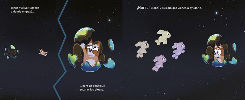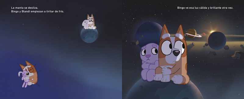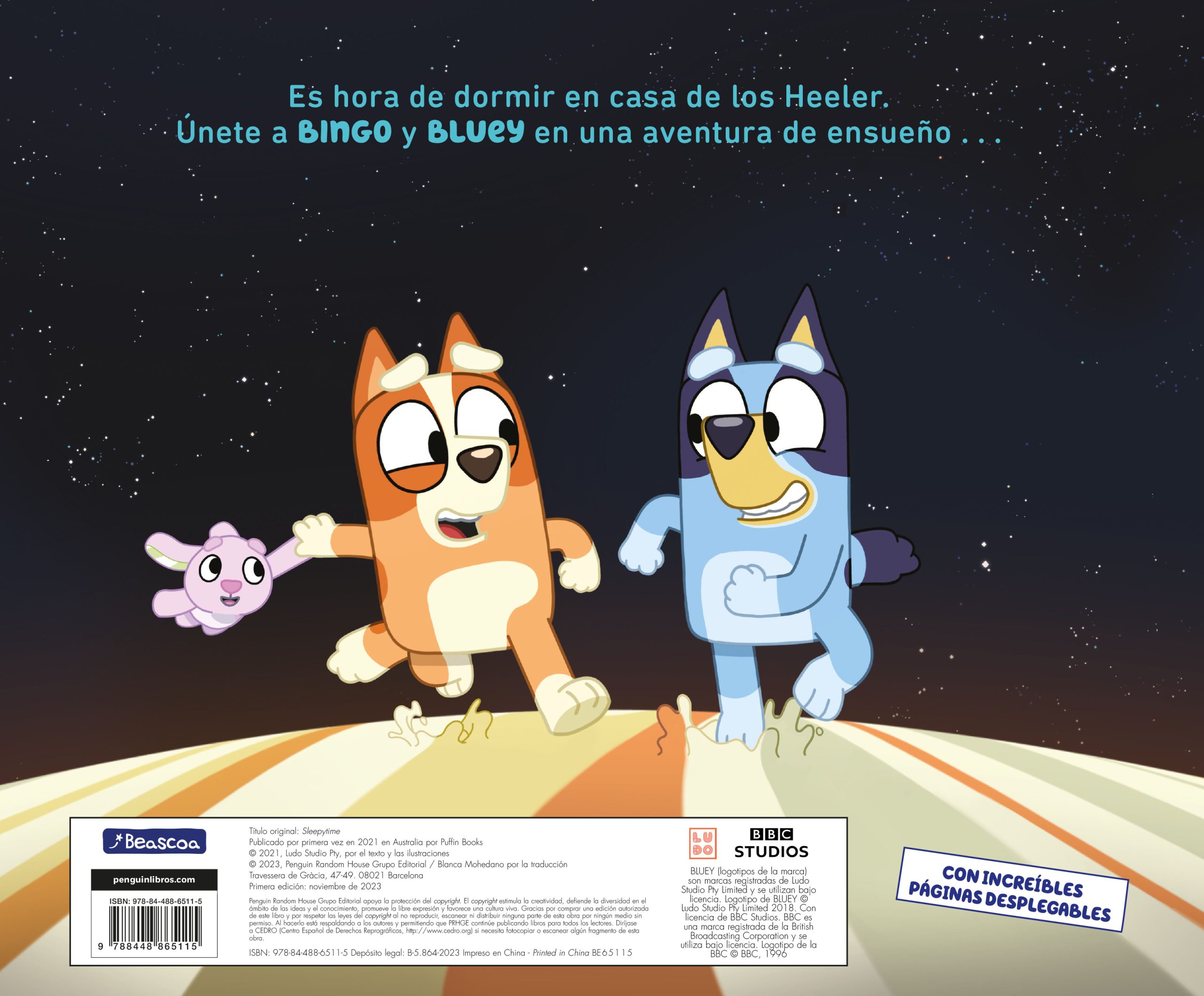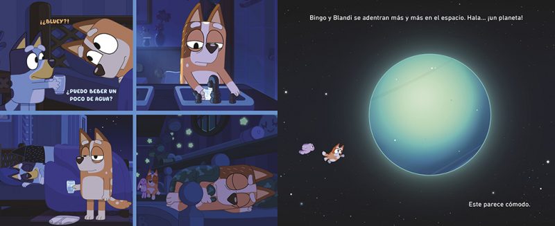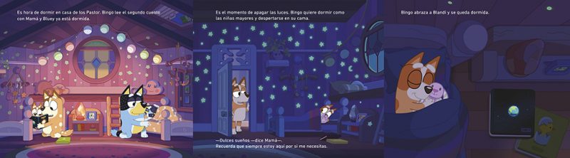 Disfruta de las sorprendentes y divertidas aventuras de BLUEY, la serie de animación más vista del mundo en Disney+ que ha cautivado a todas las familias. ¡Únete a Bluey, Bingo y su familia mientras se preparan para irse a la cama! Es la hora de dormir en casa de los Heeler. Bingo quiere imitar a los mayores despertándose en su cama por la mañana. Mientras intenta conseguirlo, vivirá un emocionante y galáctico sueño. ¿Conseguirá dormir sola? ¿Será el único miembro de la familia al que le cueste conciliar el sueño? La historia basada en el episodio ganador del Prix Jeneusse International llega en formato libro para ayudar a los peques a dormir solos por la noche. Diviértete con una nueva sorprendente historia de la serie de televisión favorita delos más pequeños y que ha enamorado a todas las familias. Un cuento entretenido con ilustraciones a color y PÁGINAS DESPLEGABLES ideal para que los niños y niñas a partir de 4 años no se aburran. *Los libros de Bluey, la seriede animación ganadora de un Emmy©, engancha a los pequeños, emociona a los mayores y trasmite valores positivos para toda la familia. *Lee, diviértete y aprende la importancia del juego en familia, de saber escuchar y de ir todos a una. *Repleto de ilustraciones a color, este libro es la lectura perfecta para los fans de la aclamada serie de televisión que ya triunfa en todo el mundo. *Leer alimenta la imaginación y la creatividad, favorece la concentración y ayuda a mejorar algunas habilidades sociales como la empatía.La crítica ha dicho:
