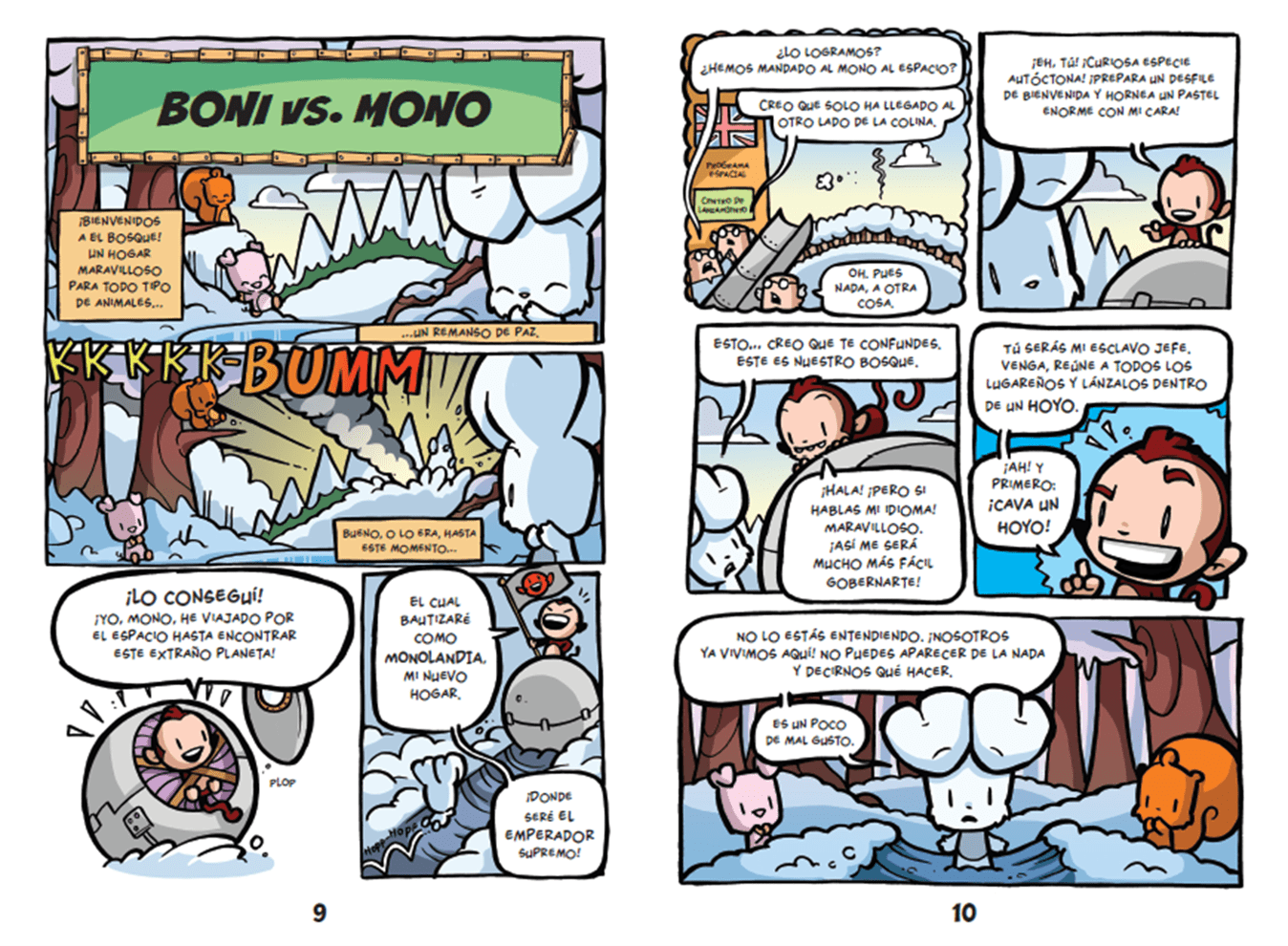 Sin embargo, Mono cree que ha llegado a otro planeta, y descubrimos que tiene una mente de villano y quiere conquistar el bosque y dominar a todos los animales que viven en él.