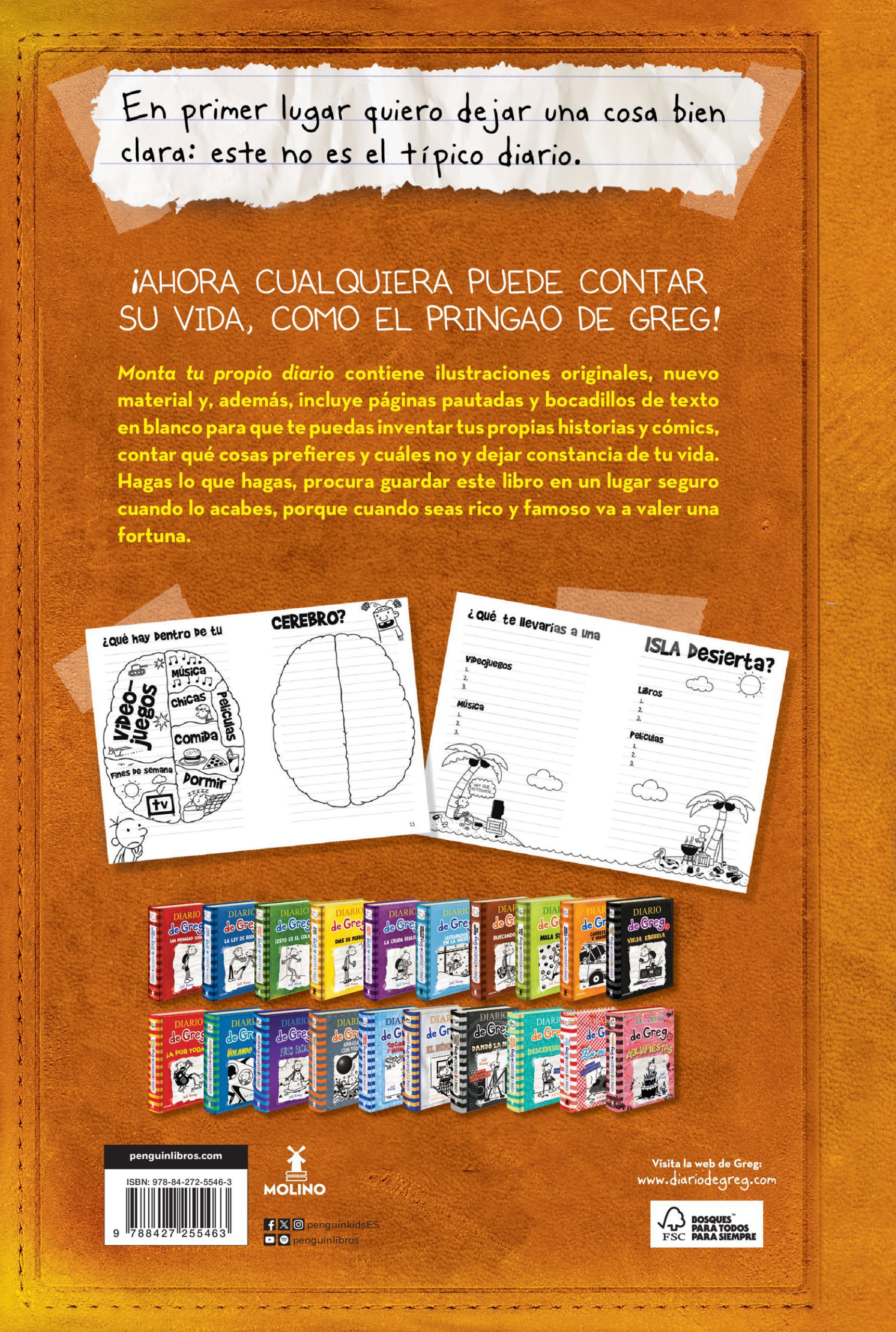 «En primer lugar quiero dejar una cosa bien clara: este no es el típico diario». ¡AHORA CUALQUIERA PUEDE CONTAR SU VIDA, COMO EL PRINGAO DE GREG! MONTA TU PROPIO DIARIO contiene ilustraciones originales, nuevo material y, además, incluye páginas pautadas y bocadillos de texto en blanco para que te puedas inventar tus propias historias y cómics, contar qué cosas prefieres y cuáles no, y dejar constancia de tu vida. Hagas lo que hagas, procura guardar este libro en un lugar seguro cuando lo acabes, porque cuando seas rico y famoso va a valer una fortuna.