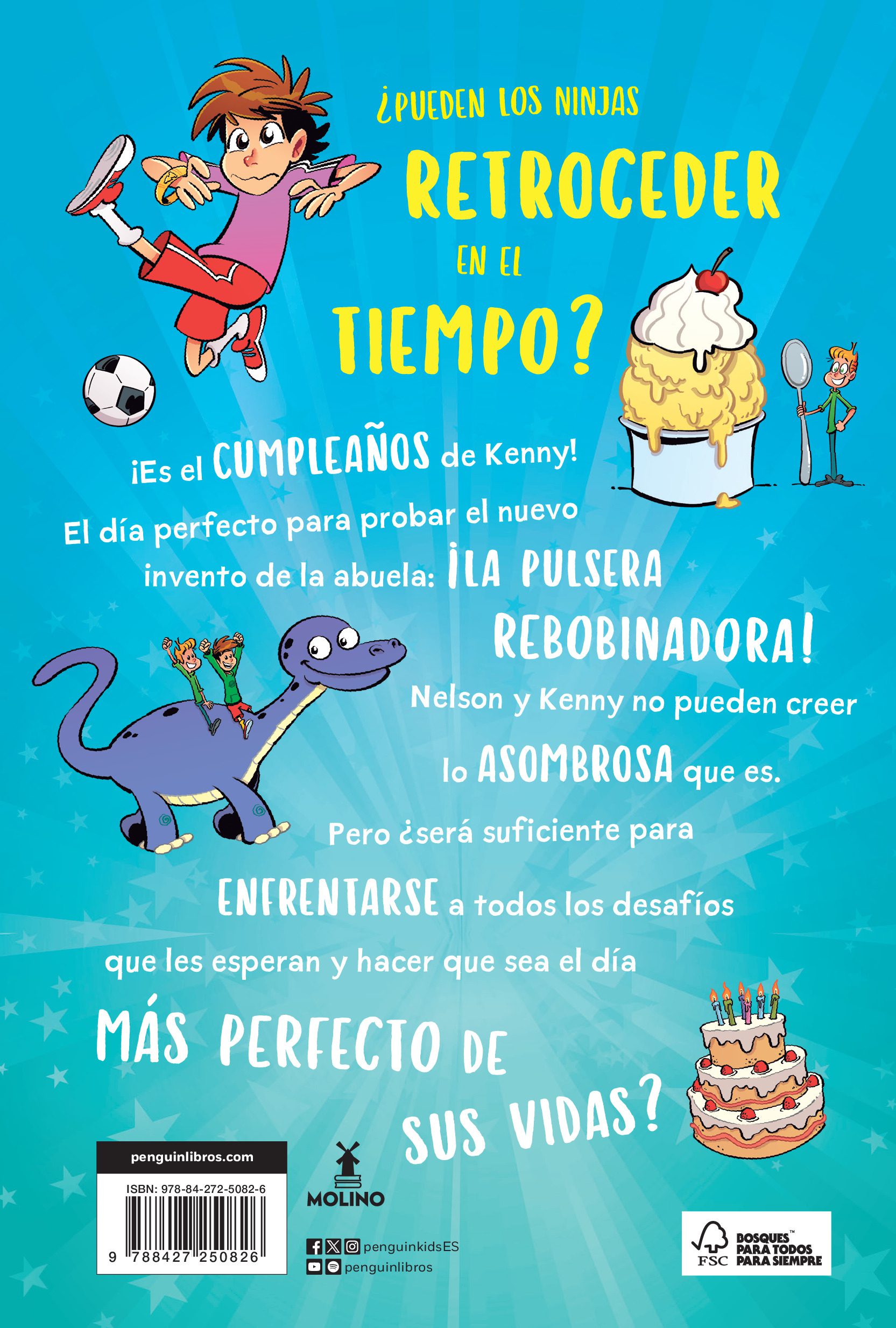 ¡DESCUBRE AL NINJA QUE LLEVAS DENTRO CON EL HÉROE MÁS DIVERTIDO! ¿Los ninjas pueden RETROCEDER EN EL TIEMPO? ¡Es el CUMPLEAÑOS de Kenny! El día perfecto para probar el nuevo invento de la abuela: ¡LA PULSERA REBOBINADORA! Nelson y Kenny no pueden creen lo ASOMBROSA que es. ¡Pueden arreglar cualquier situación en UN INSTANTE! ¿Pero será suficiente para ENFRENTARSE a todos los desafíos que les esperan y hacer que sea el día MÁS PERFECTO DE SU VIDA?