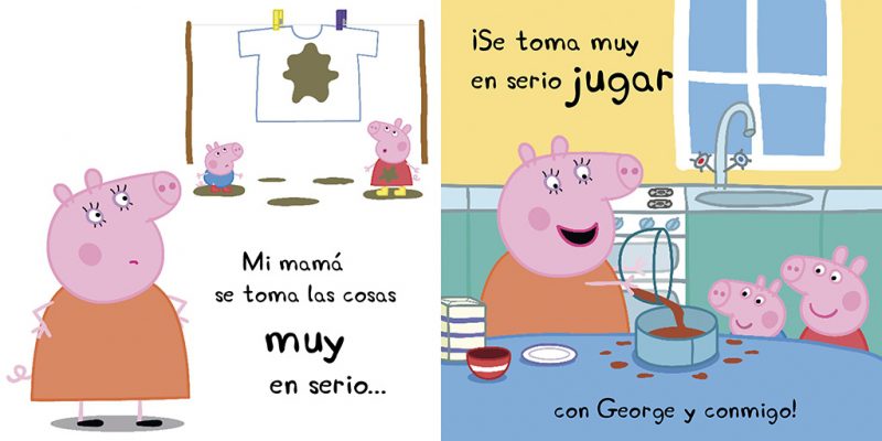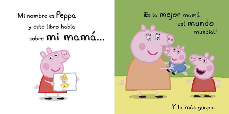 Lee este maravilloso libro y descubrirás cuánto quieren George y Peppa Pig a su mamá.Mi nombre es Peppa y este libro habla sobre mi mamá.Mi mamá es muy sabia, y sabe hacer un montón de cosas. (Le gusta saltar en los charcos con George y conmigo.) ¡Oink! ¡Oink!La colección educativa «Todo cartón» está pensada para que los más pequeños de la casa se inicien en el hábito de la lectura. El formato redondeado y resistente de estos libros consigue que sean muy manejables para los niños .