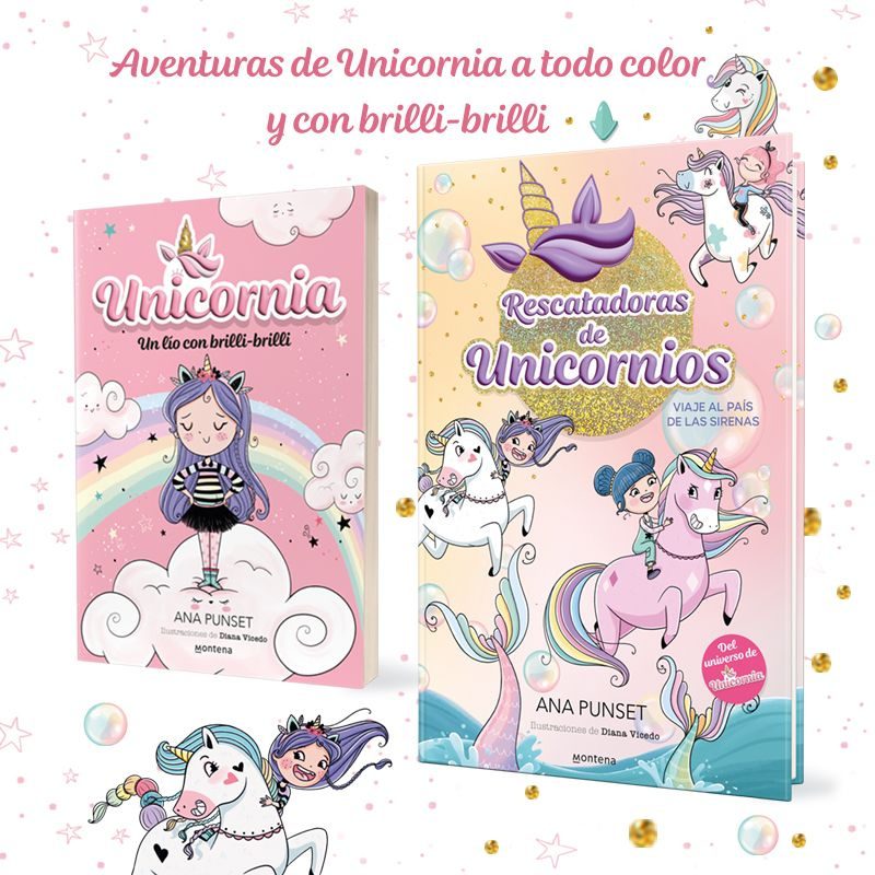 Rescatadoras de unicornios, una nueva colección a todo color basada en el universo de Unicornia. ALERTA BRILLI-BRILLI ¡SE HA PERDIDO UN UNICORNIO EN EL PAÍS DE LAS SIRENAS! ¿Aceptas la misión?¡Acompaña a Paula, Claudia y Sara para vivir el viaje más increíble! En esta ocasión tendrán que… 1) Volar hasta el País de las Sirenas–> ¡Y también nadar entre medusas y tortugas parlanchinas! 2) Superar un montón de retos mágicos –>¡Las sirenas son muy traviesas y no quieren que encuentren al unicornio perdido!3) Devolverlo a Unicornia sano y salvo –>¿Conseguirán demostrar que ellas también pueden ser Rescatadoras de Unicornios? Con brilli-brilli y diversión rescataremos al unicornio y completaremos nuestra misión ___________________________Escuela, amistad y unicornios en una serie de primeras lecturas llena de magia: -Preciosas y divertidas ilustraciones a todo color que acompañan la historia en cada página. -Texto sencillo y entretenido, fácil de leer y entender.-Con brilli-brilli en la cubierta. -Para jóvenes lectores a quienes gusten los unicornios o quieran flotar entre nubes de azúcar. -De la autora bestseller Ana Punset, que también sueña con volar con unicornios. ¡Únete a las Rescatadoras de Unicornios!