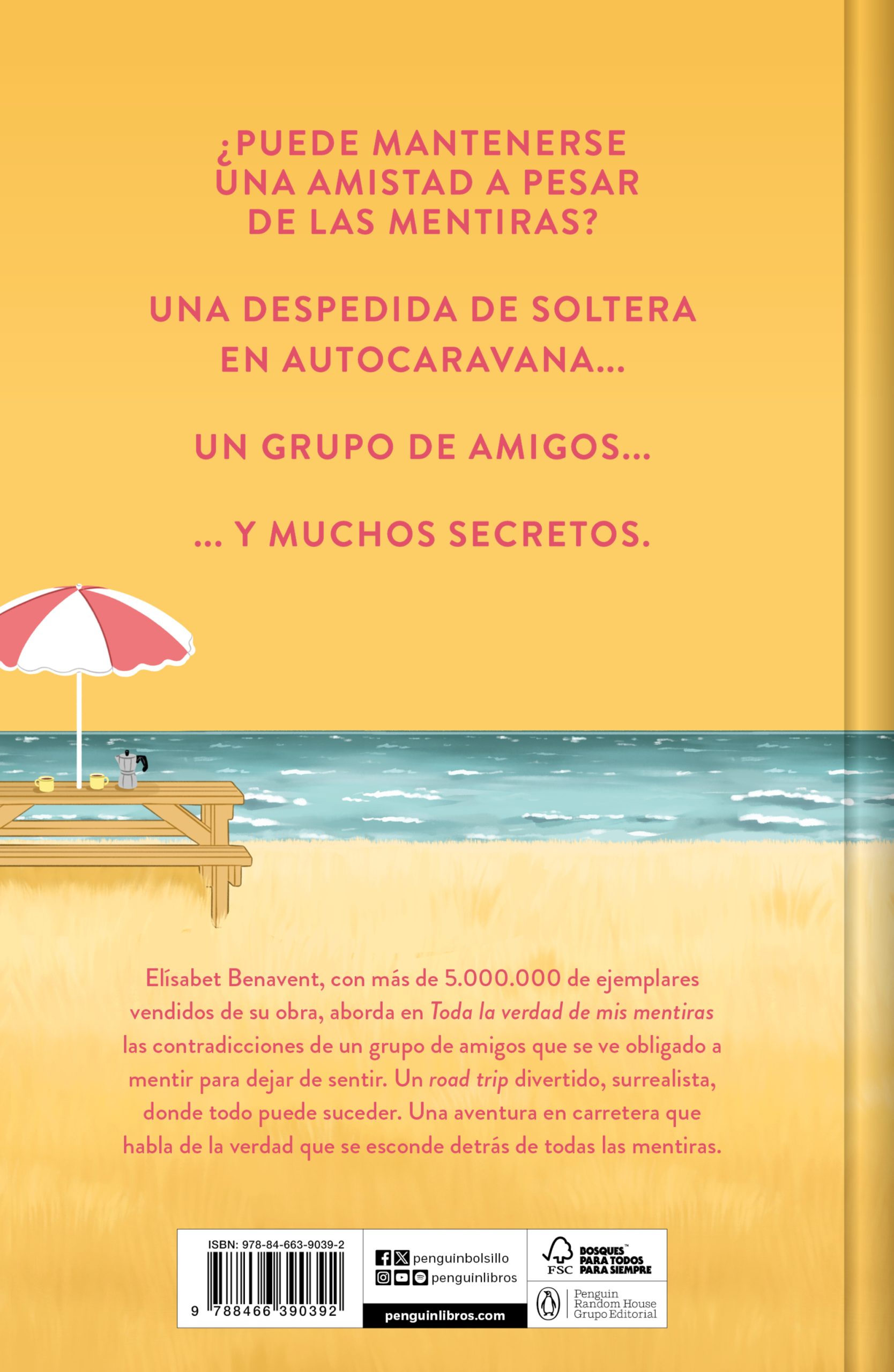 …y muchos secretos. Elísabet Benavent, con más de 5.000.000 de ejemplares vendidos de su obra, aborda en Toda la verdad de mis mentiras las contradicciones de un grupo de amigos que se ve obligado a mentir para dejar de sentir. Un road trip divertido, surrealista, donde todo puede suceder. Una aventura en carretera que habla de la verdad que se esconde detrás de todas las mentiras.Los lectores han dicho sobre Elísabet Benavent… «Como siempre @BetaCoqueta ha escrito una gran novela. Sabía que me gustaría desde el principio. Me tuvo enganchada toda la historia y el final me pareció espectacular».